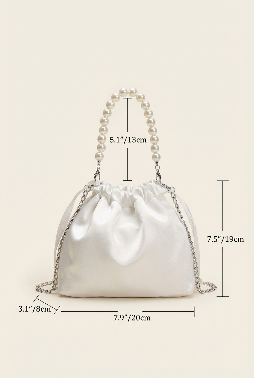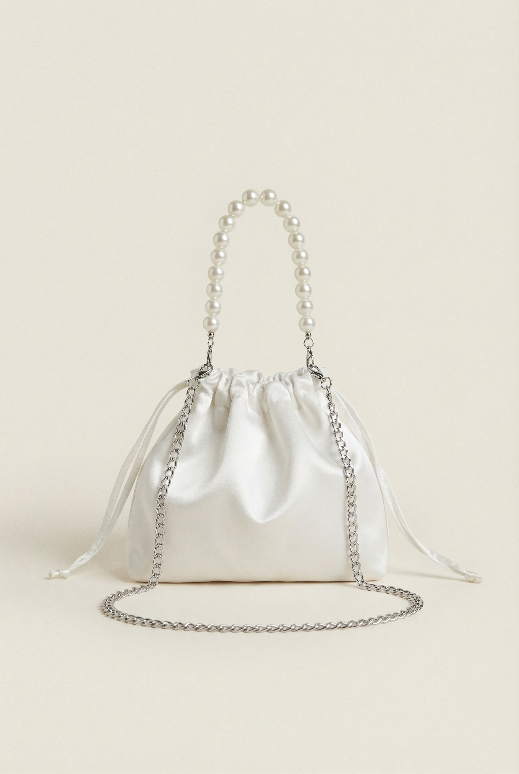 Bolso de Comunión Elegante con Asa de Perlas y Cadena Plateada