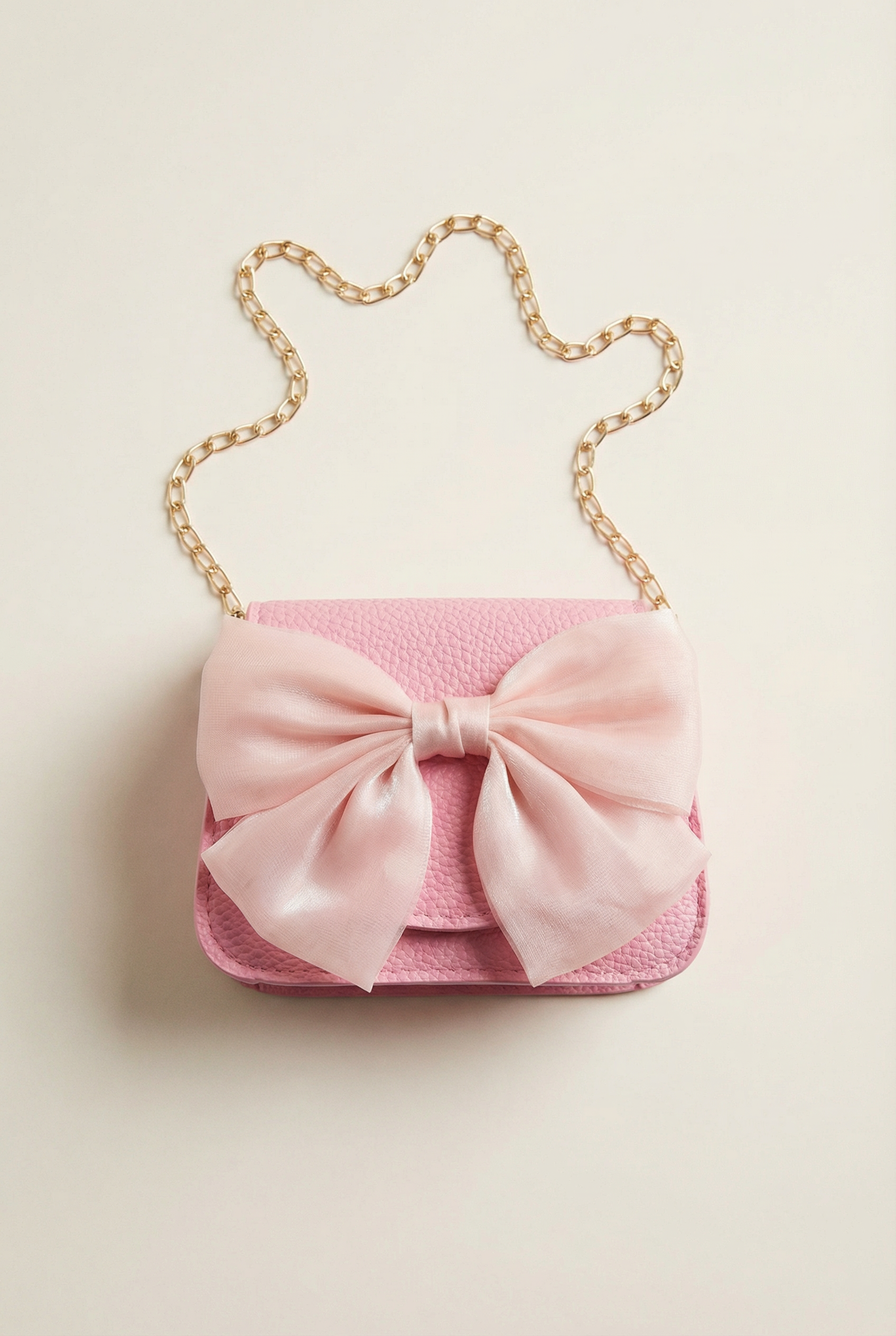 Elegante bolso rosa para niña con lazo decorativo y cadena dorada